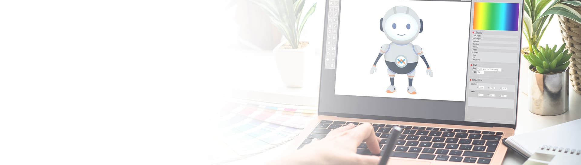 HIROW's body is dominated by gray to show the characteristics of robots in general, and the blue color reflects Wowrack's reliability in providing services in the technology sector.